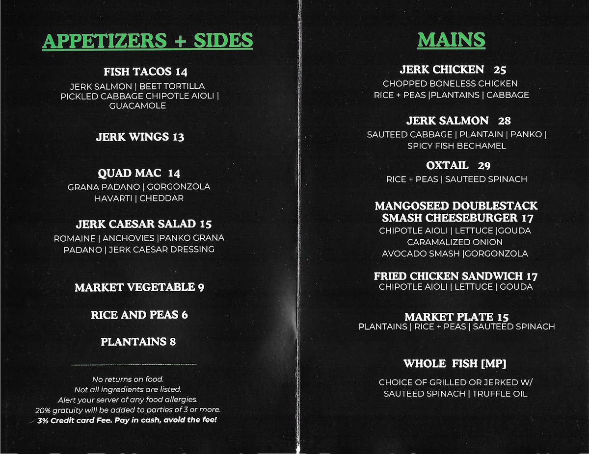 boneless jerk chicken, house-made jerk sauce, sweet plantain, focaccia